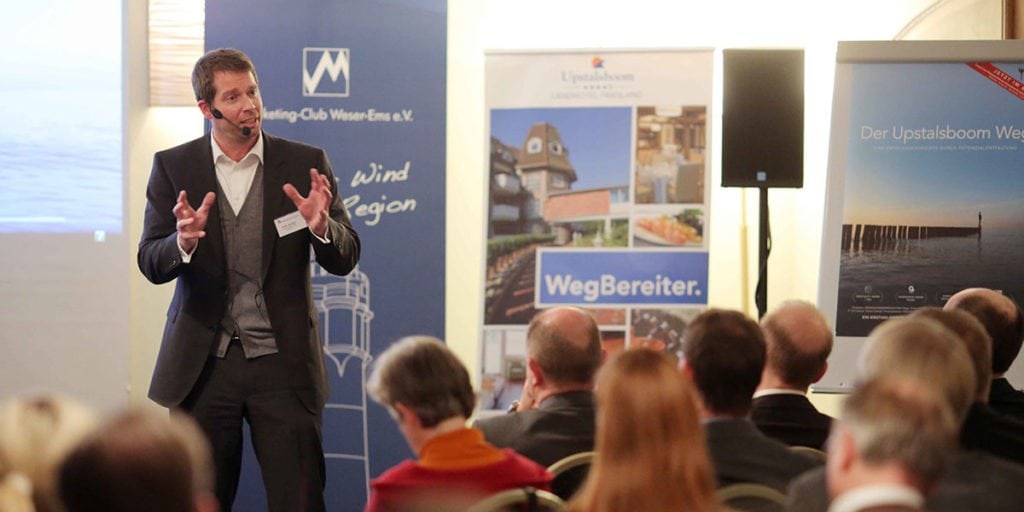 Es ist ebenso erstaunlich wie erfreulich, dass rund 90 interessierte Marketeers auf Einladung des Marketing-Clubs Weser-Ems nach Varel zum Vortrag von Bodo Janssen – Geschäftsführer der Upstalsboom Hotel + Freizeit GmbH & Co. KG – gekommen sind. Thema des Abends war „Wertschöpfung durch Wertschätzung“, wobei sich dahinter die schier unglaubliche Geschichte von Upstalsboom in den vergangenen Jahren verbirgt.