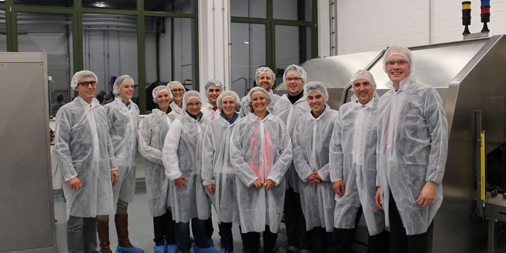 Auf Einladung von Dr. Henning Müller, Projektmanager beim Deutschen Institut für Lebensmitteltechnik e.V., haben sich die Marketing-Junioren am 23. Oktober in Quakenbrück getroffen. Nach einer Begrüßung durch Dr. Volker Heinz, Direktor des DIL, stellte Sebastian Biedermann, Leiter des Bereiches Marketing & Kommunikation, das Institut vor.Mittlerweile entwickeln rund 150 MitarbeiterInnen Innovationen in den verschiedensten Bereichen der Lebensmitteltechnologie. Vom kleinen mittelständischen Unternehmen aus dem Nordwesten bis hin zu den großen Weltmarken, das DIL ist zentrales Bindeglied zwischen Wissenschaft und Praxis. Von großer Bedeutung ist dabei auch die eigene Markenführung. Stelios Patsiavos von der Agentur „Running Frames“ stellte die Entwicklung der Marke „DIL“ vor. Spätestens bei der anschließenden Besichtigung des Technikums wurden die Begrifflichkeiten CI und CD mit Leben gefüllt und in Zusammenhang gebracht.